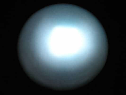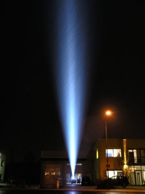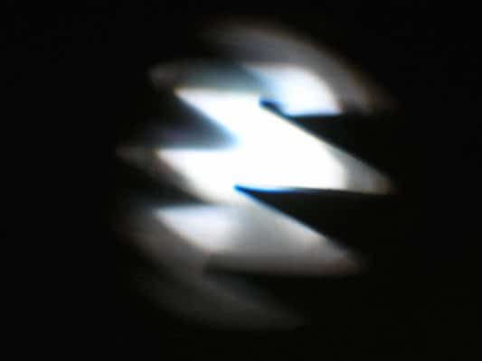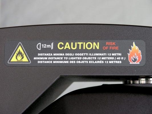 Bereits vor dem ersten Einschalten unseres Testgerätes ist uns der große Warnhinweis auf dem Bügel des Sharpys aufgefallen: „Minimum distance to lighted objects 12 meters“ steht dort geschrieben. Nach Einschalten des Sharpys wiederholt sich die Warnung noch einmal im Display bevor dann die DMX-Adresse angezeigt wird. Hat das Leuchtmittel nicht eine Leistungsaufnahme von max. 189 Watt? Wir zünden den Brenner und allmählich wird der Grund für die Warnungen sichtbar und spürbar. Der offene Beam ist extrem eng und verfügt zudem über einen sehr starken Hotspot. Die Energie, die der Lichtstrahl mit sich führt, ist selbst nach 12 Metern noch deutlich in Form von Wärme spürbar. Obwohl wir bei Tageslicht getestet und niemals direkt in den Beam geschaut haben, sahen wir nach kurzer Zeit buchstäblich nur noch Sternchen, was die Bedienung unseres Lichtpultes nicht gerade vereinfachte. In kleinen Räumen wie z. B. Fernsehstudios ist der Sicherheitsabstand von 12 m natürlich kaum realisierbar. Das hat man wohl auch bei Clay Paky gemerkt und einen Filter entwickelt, der einfach in das Gerät einzubauen ist und den Mindestabstand zu beleuchteten Objekten auf 7,5 m verkleinert. Dieser Filter stand uns beim Test leider noch nicht zur Verfügung.