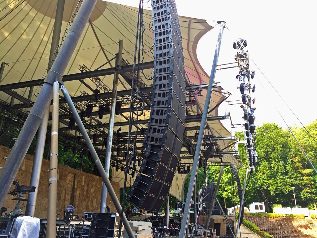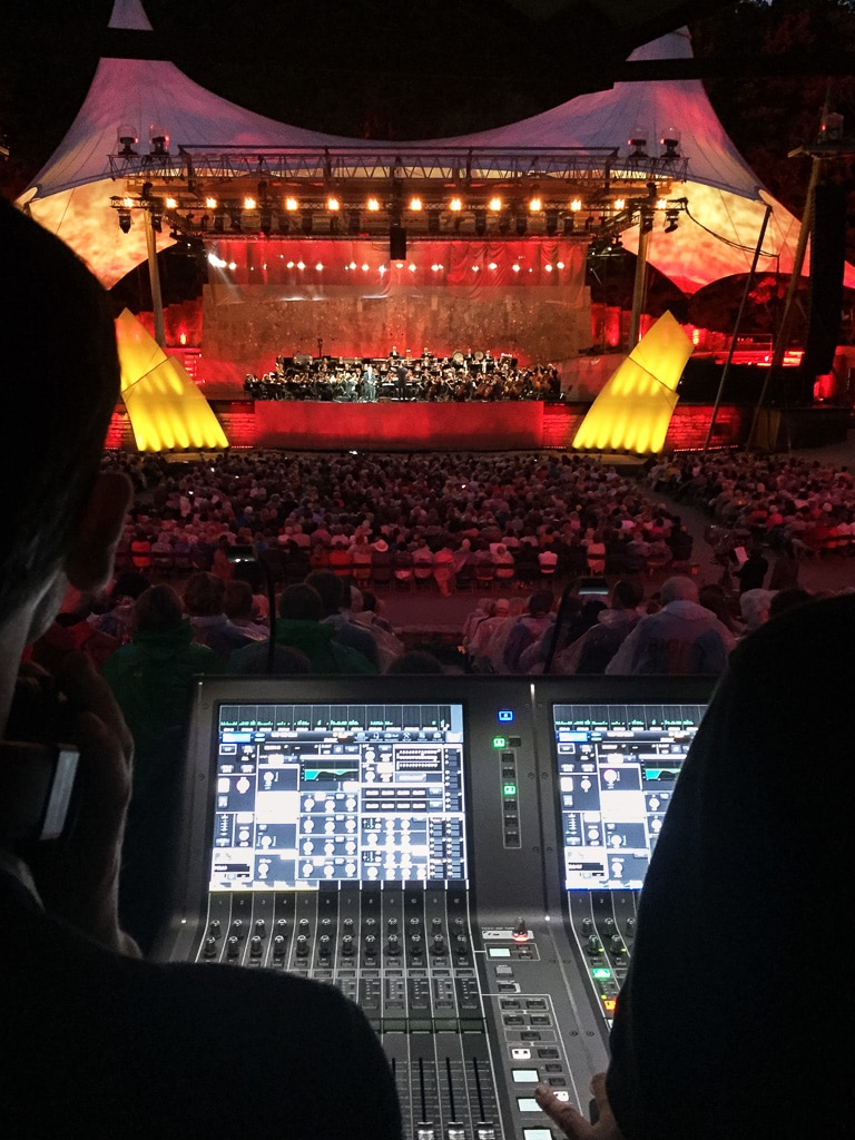 Musikgenuss garantiert im Konzertsaal selbstverständlich die reinste und direkteste Form der Klangwahrnehmung – ohne jegliche Schallwandlung. Auch der größte Konzertsaal sorgt Dank entsprechender Akustik in allen Hörpositionen für ein optimales Hörerlebnis. Stellt man jedoch ein Sinfonieorchester samt Solisten auf eine große Open-Air-Bühne, wird eine PA unerlässlich. Zudem entfällt natürlich die Raumakustik. Die Herausforderung liegt auf der Hand: Wie schafft man mittels PA eine überzeugende Konzertsaalakustik mit befriedigender Tiefenstaffelung? Und das für gut 20.000 Zuhörer, verteilt auf viele tausend Quadratmeter?