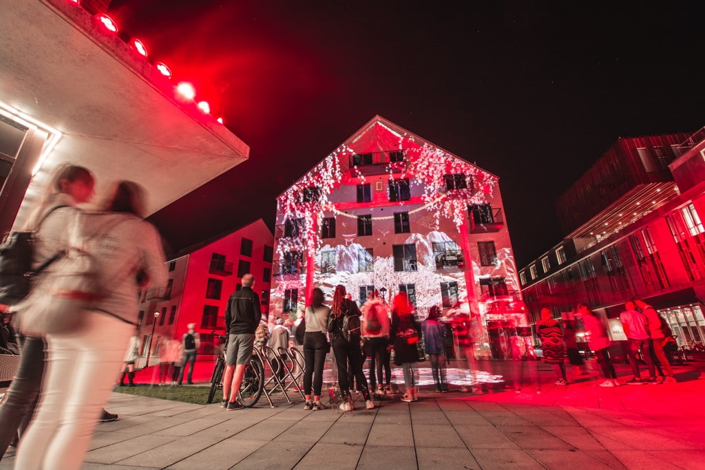 Die farbenfrohe Lichtkunst unterstrich die Anziehungskraft von Plätzen, Gebäuden mit roten Dächern und Grünflächen. Die Lichtinstallationen verbanden Kunst mit technischen Lösungen und wissenschaftlichen Elementen zu einem beeindruckenden Gesamteffekt. Die Zuschauer hatten die Möglichkeit, die tanzenden Fontänen “Liquid Dance” neben dem neuesten Stadtteil der Hauptstadt, Paupys, und ein astronomisches Spektakel “Nova” von Künstlern aus dem Vereinigten Königreich im Teichpark zu bewundern.