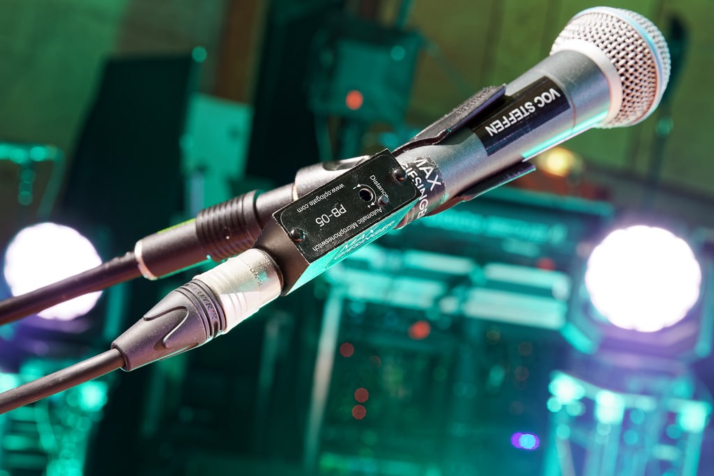 Backing Vocals Alle Instrumentalisten (mit Ausnahme des Schlagzeugers) nutzten kabelgebundene Shure Beta58 samt Optogate PB-05 (Bild: Jörg Küster)