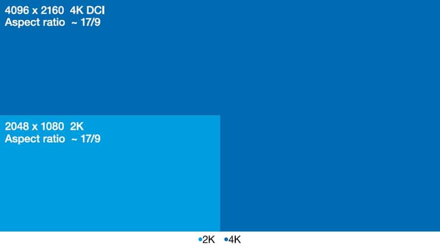 4K DCI (Digital Cinema Initiatives) mit einem Pixel-Verhältnis von 4.096 × 2.160 und einem Seitenverhältnis von 17:9. Dieses Format ist historisch der Kinotechnik geschuldet.