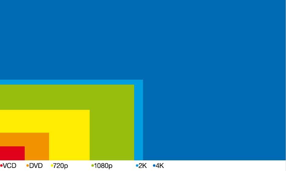 4K steht zunächst einmal für eine höhere Auflösung – das ist richtig. Die höhere Auflösung ist auch die am besten geeignete Methode, um auf dem Consumer-Markt für die benötigte Aufmerksamkeit und das gewünschte Kaufverhalten zu sorgen. Aber das „schärfere Bild“, die „bessere Auflösung“ und „noch mehr Details“ sind nicht alles. 4K wird häufig (nur) als Verdoppelung der vertikalen und horizontalen HD-Auflösung, also 1.080 × 1.920, definiert, somit stehen vertikal 2.160 Bildpunkte und horizontal 3.840 Bildpunkte bereit. Die Zahl der Bildpunkte ist somit viermal höher als bei Full HD. Diese vier Mal so hohe Anzahl wird daher auch mit Quad Full HD oder mit dem Kürzel QFHD bezeichnet. Der Begriff 4K rundet also die 3.840 horizontalen Bildpunkte in diesem System zu 4.000 auf (k für kilo =1.000, es müsste also eigentlich besser „4k“ heißen).