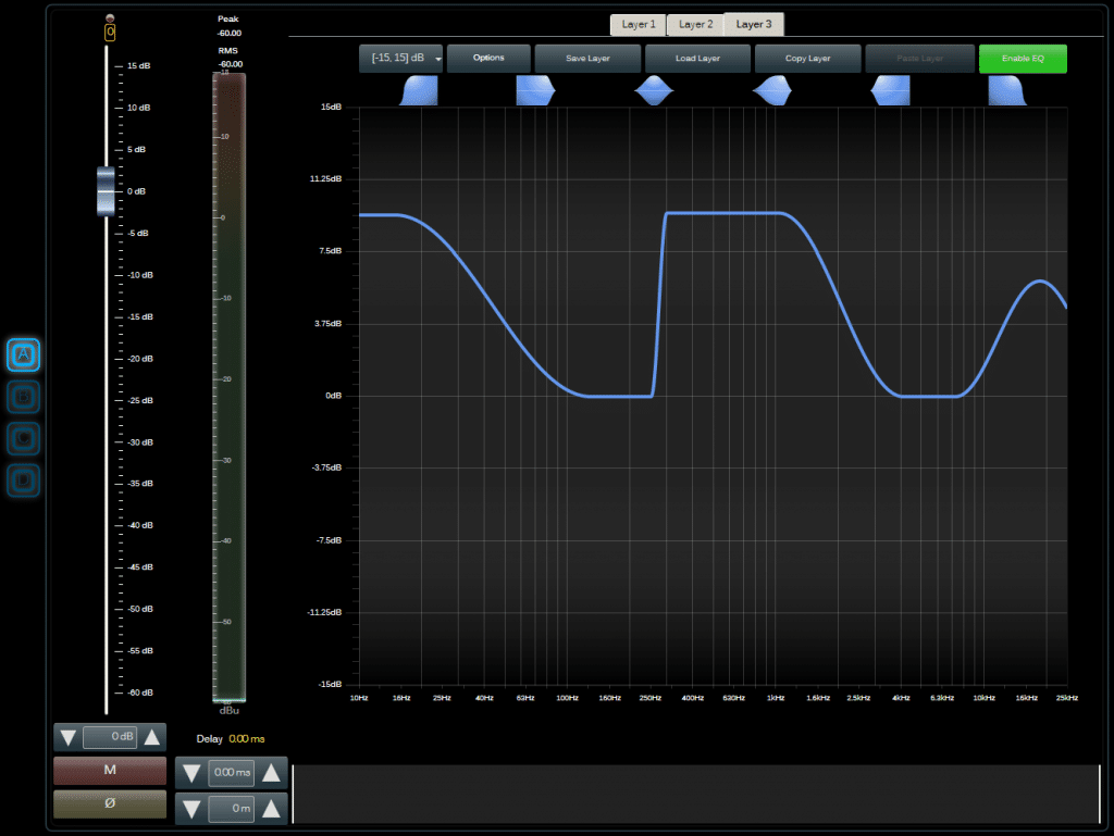 Advanced Filter Einheit mit drei Layern in der Powersoft Armonia Software (Bild: Anselm Goertz)