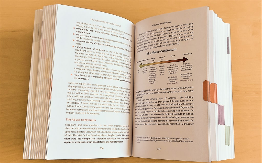 Mit „No sleep til Brooklyn“ waren die Beastie Boys nicht die ersten, die über das verrückte Leben als Künstler auf Tournee und den Lifestyle des Sex, Drugs and Rock ‘n’ Roll gesungen haben. Unzählige Songs der Musikgeschichte thematisieren versteckt und codiert (Brown Sugar, Rolling Stones) oder ganz offen (Rehab, Amy Winehouse) Drogenkonsum und Suchtverhalten. „The Music Industry Manual“ analysiert Mental Health in der Musikindustrie und zeigt Lösungswege auf.