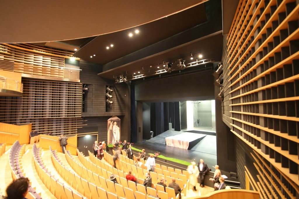 Zuschauerraum von Bühne gesehen – zu sehen sind die Z-Brücken (Bild: Herbert Bernstädt)