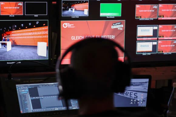 Live-Events fordern Live-Content. Sicher freuen wir uns, wenn schon zwei Tage vor der Veranstaltung alle Inhalte da sind, die Reihenfolge von Rednerinnen und Rednern feststeht und die Entscheidungen für Logo und Claim getroffen sind. Die Realität sieht oft anders aus und diesen Momenten mit Gelassenheit entgegen sehen zu können, macht die Arbeit für alle leichter. Die Regel „Das richtige Tool für den richtigen Job“ bleibt unangetastet, aber nicht von Speicherplätzen in Datenmischern oder unterlegenen Key-Methoden abhängig zu sein, zahlt sich aus. Dafür muss der ein oder andere Arbeitsablauf über Bord geworfen und neu gedacht werden: Besser jetzt als zu spät. Die computeraffinen Kreativen und erfahrenen Broadcaster werden hier überzeugen.