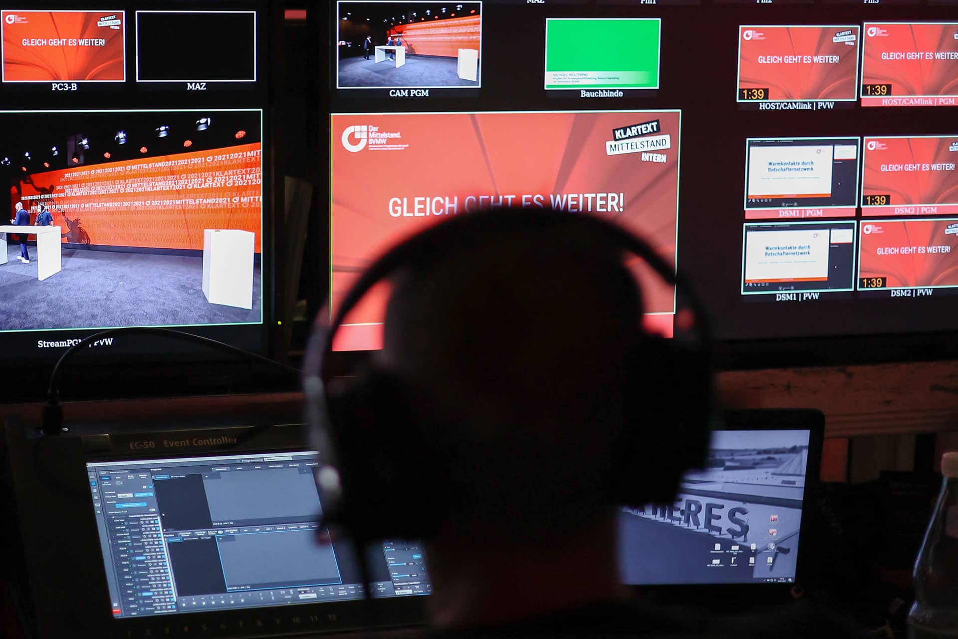 Plötzlich sind die Namen der Referierenden nicht mehr per Aufsteller auf dem Rednerpult oder im Hintergrund auf der projizierten Powerpointfolie zu sehen, sondern werden später dem Sendebild hinzugefügt. Firmenlogos landen in einer Bildecke, anstatt die Bühne zu zieren – aber warum eigentlich? Die Platzierung von Inhalten kann noch immer vor der Kamera passieren.