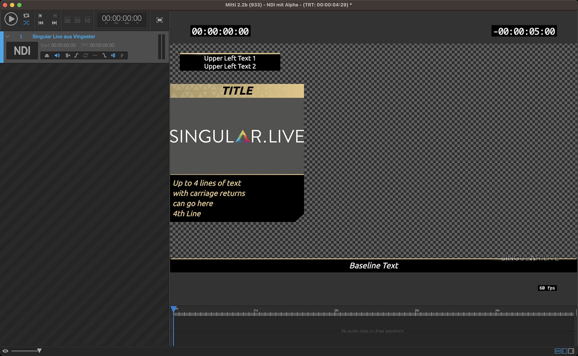 Eine Quelle für Video und Grafiken: Hat man erst ein- mal ein NDI-Signal mit Alphakanal, kann auch der Videoplayer zur Quelle der Grafiksignale werden. Mitti ist in der Lage, die Inhalte in Key- und Fill-Signale an Out- put-Karten von Blackmagic Design zu übergeben. Wenn kein Video läuft, könnte Mitti so auch zur Schnittstelle für die Grafiken werden. Seit Version 2.1 unterstützt Mitti auch die direkte Einbindung vom Webinhalten und ein Umweg über NDI wird unnötig. (Bild: Alexander Heber)