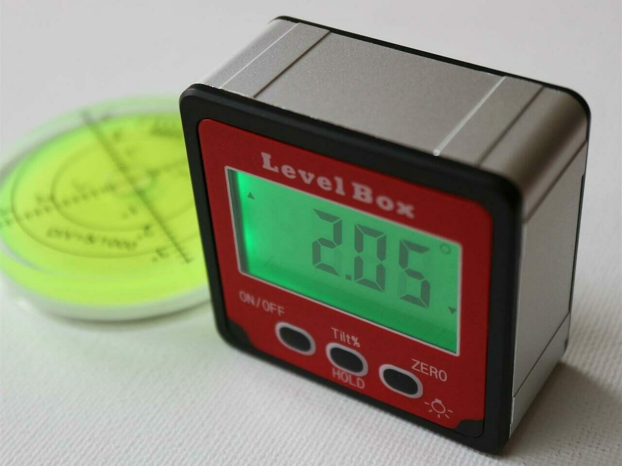 Digitale Neigungsmesser finden sich integriert in Wasserwaagen, oder wie hier als kleine Box mit magnetischen Seiten (Bild: Caterpillar Red)