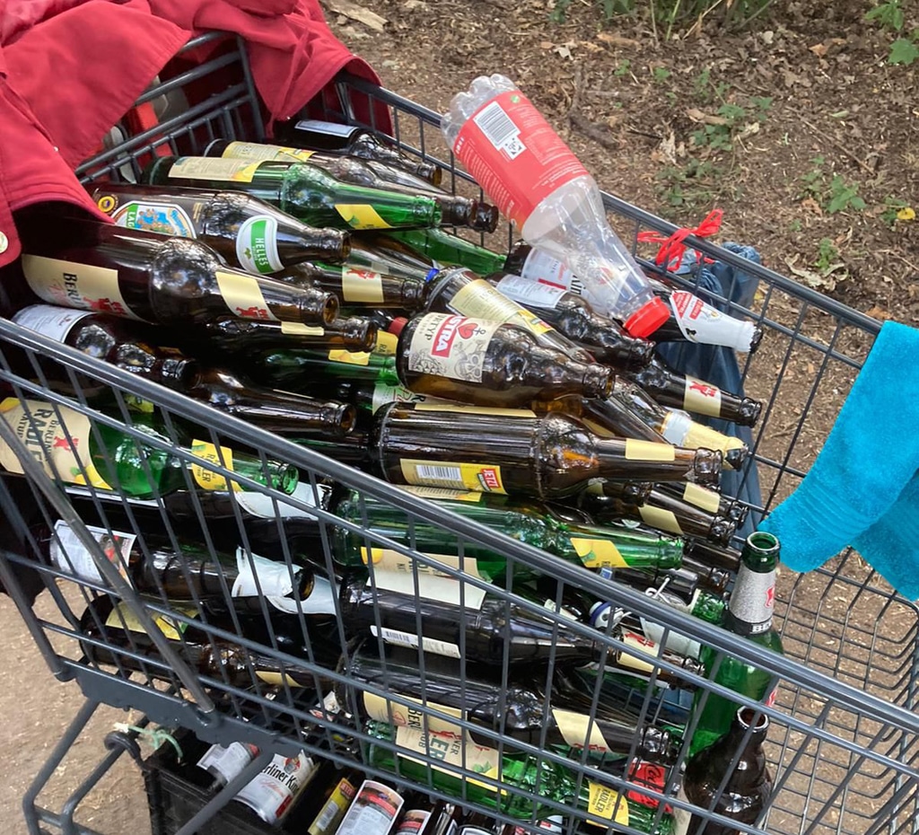 Professionelle Flaschensammlung auf dem Weg zum Veranstaltungsgelände