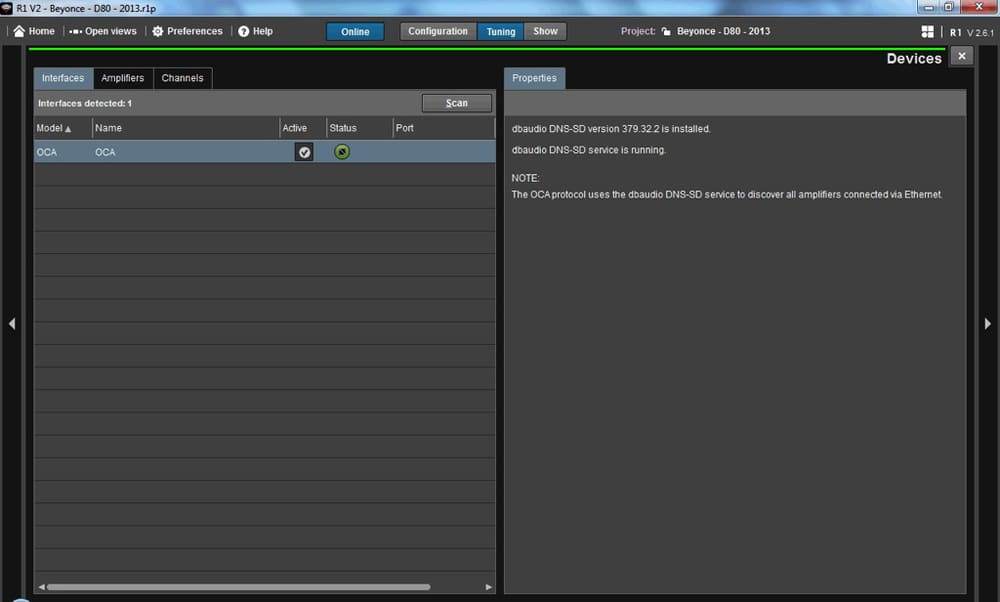 Fernsteuerung von D80-Verstärkern mit der R1 Software über OCA, so lässt sich z. B. die