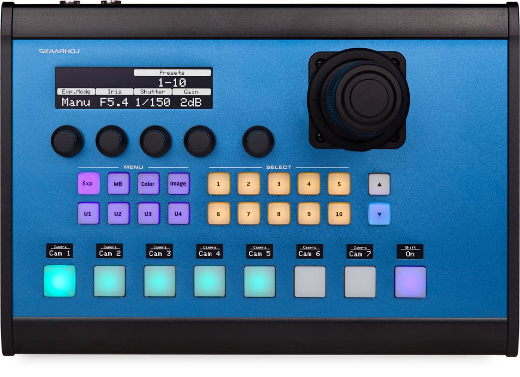 PTZ Pro Controller von Skaarhoj Ein einzelner Controller dient zur Steuerung mehrerer Kameras. Man erhält direkten Zugriff auf die wichtigsten Einstellungen und kann natürlich Presets speichern und abrufen. (Bild: Skaarhoj)