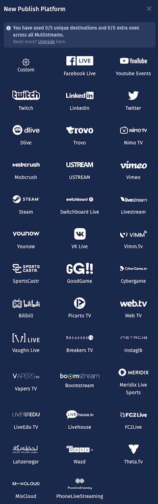 Einer für alle: Bei Castr lässt sich parallel auf eine Vielzahl weiterer Portale streamen, ohne eigene Encoder beanspruchen zu müssen (Bild: Alexander Heber)