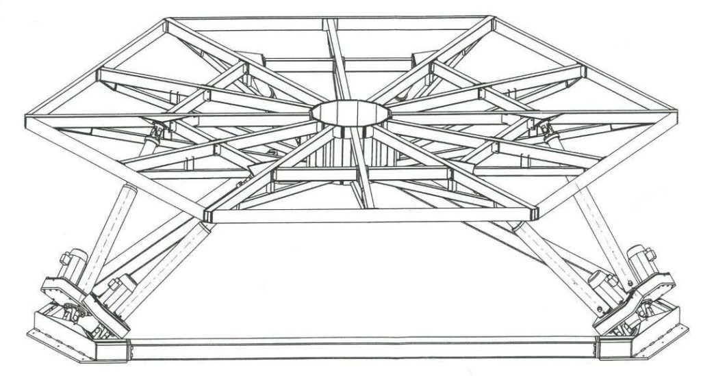 Hexapod Für einen Automobilhersteller wurde bereits vor einigen Jahren ein Hexapod gebaut, welches mit sechs über Kugelumlaufspindeln angetriebenen Stabachsen in allen Achsen und hoher Dynamik bewegt wurde (Bild: Schokopro)