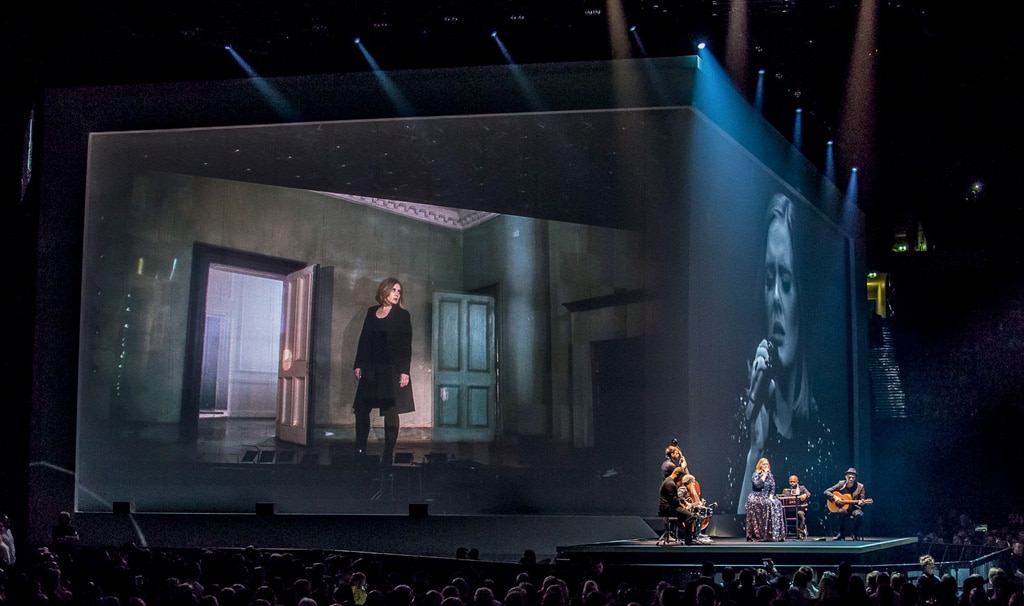 Raffbarer Gobelintüll als Projektionsfläche auf der Adele-Tourproduktion (Bild: Movecat / Ralph Larmann)