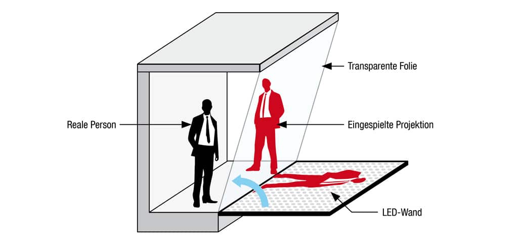 Effektfolie Pepper´s Ghost In der Folie spiegelt sich das Bild der davorliegenden LED-Wand (Bild: Gerriets)