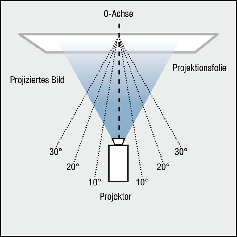0-Achse und seitliche Betrachtungswinkel einer Aufprojektion