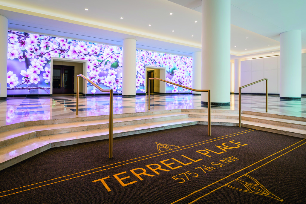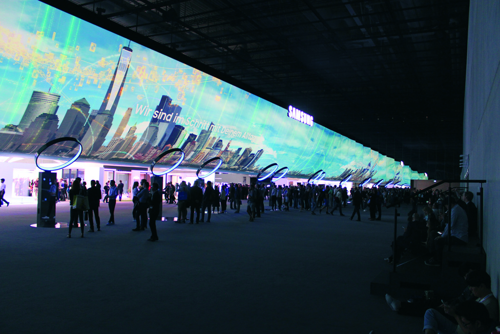 10 × 56 Meter große Projektionsfolie auf einem Messestand von Samsung (Bild: Gerriets)