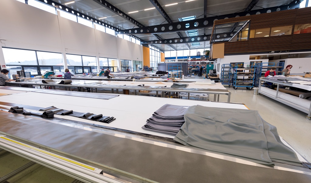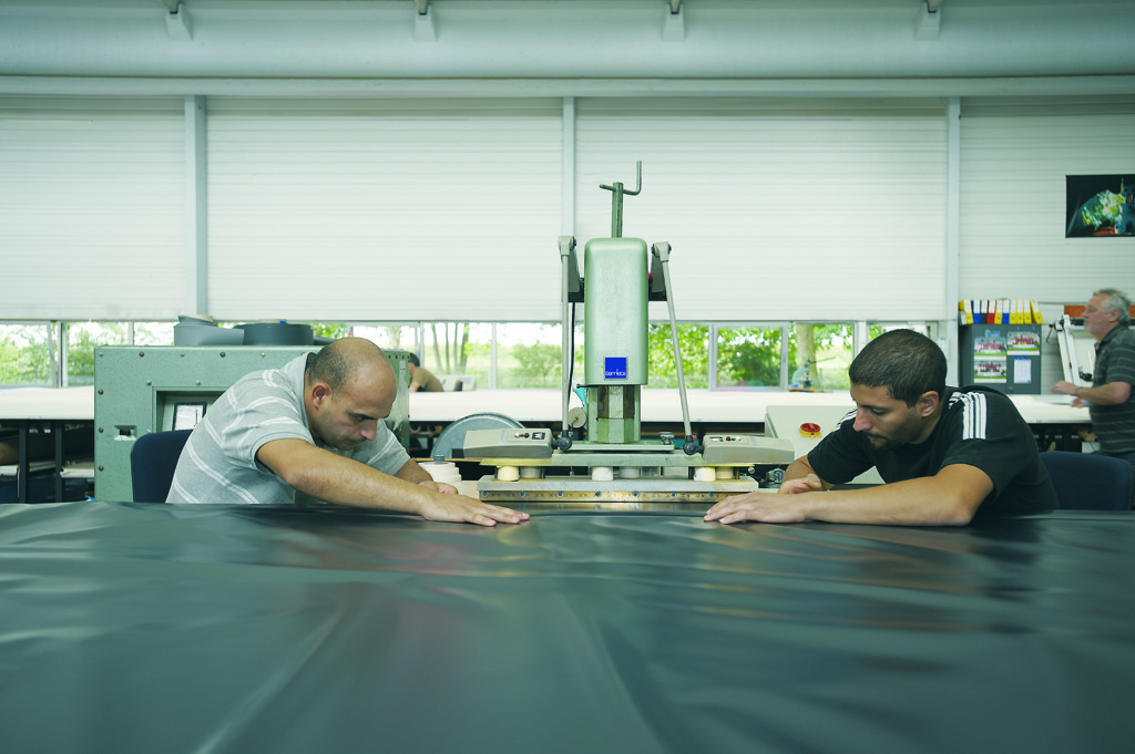 Konfektionierung der Projektionsfolien (Bild: Christoph Hilger / AV Stumpfl)