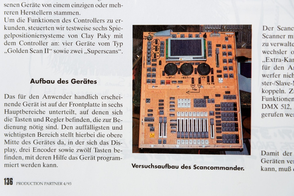 Technisch hat die Branche nicht nur mit der Marktreife der blauen LED gewaltige Fortschritte gemacht. Mein erster Beitrag für PRODUCTION PARTNER war die Erläuterung des damals neuen Standard-Protokolls der Lichttechnik: DMX512/1990 – es sollte die damals üblichen analogen Multicorekabel ersetzen. Es folgten zahlreiche Gerätetests, Konzertberichte, Gespräche mit Lichtdesignern. Man traf auf Menschen wie Günter Jäckle, der uns damals bei der Entwicklung von Light Guide unterstützte: Einem CAD-Tool auf Autosketch-Basis aus dem Hause PRODUCTION PARTNER, mit dem sich erstmalig preiswert digitale Beleuchtungspläne mit standardisierten Symbolen zeichnen ließen. Günter Jäckle war (und ist) nicht nur einer der begnadeten Lichtdesigner, die Frontraversen schon am Boden einleuchten konnten, er beeindruckte schon damals als kreativer Mensch und Tüftler. So waren die ersten beweglichen Videobeamer im Bügel eines Moving Lights eine seiner Eigenkreationen bei Herbert Grönemeyer. Ähnlich faszinierend wie Willie Willams, der 1997 bei der U2 Pop Mart-Tournee (Stage Architect: Mark Fisher) mit einer (für damalige Verhältnisse) gigantisch großen Videowand, zusammengesetzt aus einer Art LED-bestückter Dachlatten, bisher ungekannte Bilderwelten schuf. Auch die Gerätetests erscheinen aus heutiger Sicht etwas belustigend. Damals testeten wir den seinerzeit revolutionären Scancommander aus dem Hause MA Lighting Technology von Dipl.-Ing. Michael Adenau. Die Fotos in PRODUCTION PARTNER zeigten unter anderem den Prototypen, aufgebaut auf Lochrasterplatinen. Im Fazit war zu lesen, dass dieses Gerät wohl nur für wenige Großproduktionen geeignet sei: Weil man bis zu 16 bewegliche Scheinwerfer damit steuern könne …