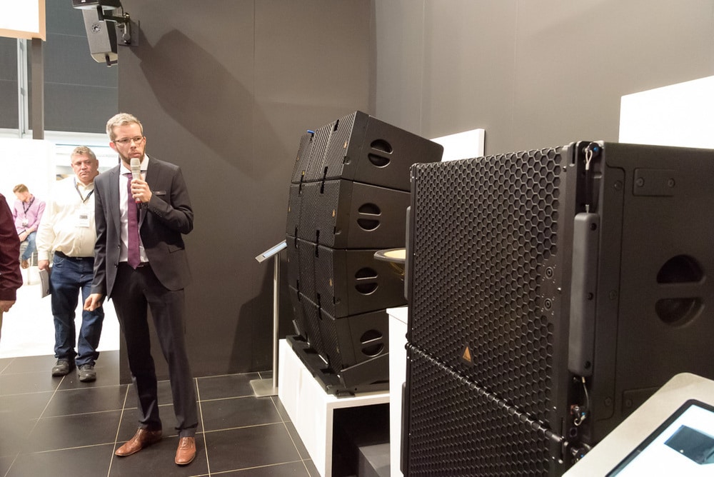 Adamson Audio nutzte die Prolight+Sound, um zwei seiner aktuellen Anwender vorzustellen: Tim Colvard berichtete von seiner Arbeit mit Macklemore (Tourbericht dazu demnächst in PRODUCTION PARTNER), Ricki Cook von der Ausstattung vieler Kirchen mit Tausenden von Besuchern. Hillsong sei besonders bekannt für sein rockiges Musikprogramm, letztlich gehe es aber um die perfekte Artikulation der Sprache – und dabei finden viele der Hillsong-Veranstaltungen in akustisch schwierigen Räumen wie ehemaligen Lagerhallen statt. Beeindruckt zeigte sich Ricki auch von der kompakten S-Serie. Ursprünglich ging es um eine Aktualisierung der Anlage in Sydney, es standen aber weitere Erneuerungen sowie auch Neuinstallationen an, die man möglichst mit vergleichbaren Systeme realisieren wollte. Aktuell fertiggestellt wurde eine Installation in Konstanz. In Sydney kommen Adamson E12 und der neue kompakte Subwoofer E119 zum Einsatz, den Jochen Sommer noch einmal besonders in den Fokus rückte: der E119 nutzt ein 19″-Chassis mit Kevlar-Membran und Neodym-Magnet.
