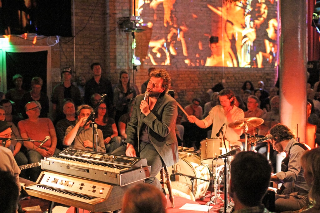 Profimusiker, ein FOH-Mann und ein Medienkünstler besinnen sich auf die „ursprüngliche Idee“ des Musikmachens: Eine Bühne mitten im Raum, kein klassisches Monitoring, überschaubare Rundum-Beschallung sowie verfremdete Visuals auf Backsteinwänden, so dass Spontanität und Freiraum im Vordergrund stehen