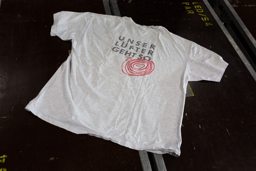 Exemplarisch für die vielen Motive sei gleich ein besonderes Exemplar herausgegriffen – das mit dem Kringel: d&b audiotechnik „unser Lüfter geht so“: 1989 briefte Uli Mall von d&b Audiotechnik die Agentur Schneider/Waibel zum Verstärker P1200A mit einer Fülle an technischen Details – inklusive eines „computergesteuerten Lüfters“. Die Agentur sollte die Verstärkerphilosophie in eine plakative Kampagne umsetzen und hantierte mit roten Schnipseln. Das Rennen machte dann ein Motiv mit kreisförmigen Texten, aber der Lüfter schaffte es doch aufs T-Shirt – und wurde legendär. Später gab es sogar eine „Neuauflage“. Tipp an die Sammler: Das Original zeigt auch vorne den Kringel, bei der Neuauflage wurde es durch einen Text zum 25jährigen ersetzt.
