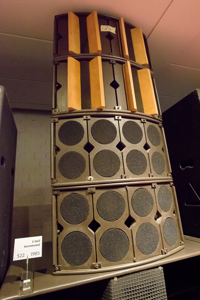 Die ausgestellten Lautsprecher im AV- und Veranstaltungstechnikmuseum der AED Group zeigt für den Zeitraum von 1982-1988 einige der spannendsten Lautsprecherentwicklungen: Eine davon sollte die professionelle Beschallungstechnik extrem beeinflussen!