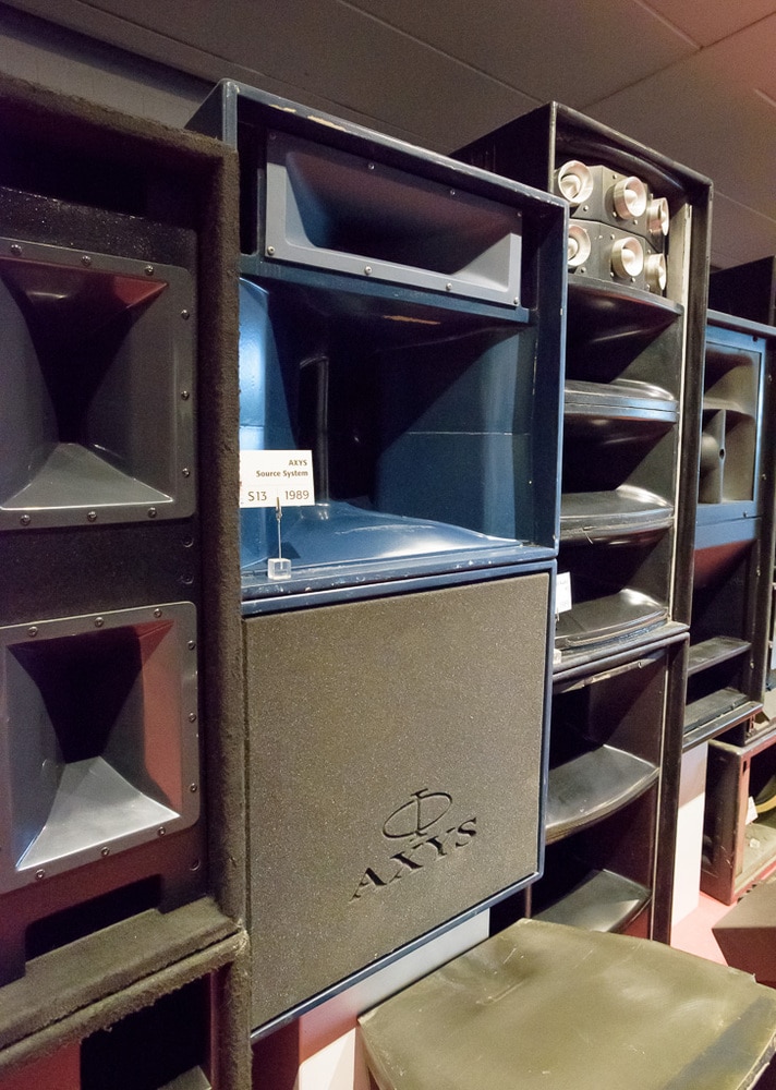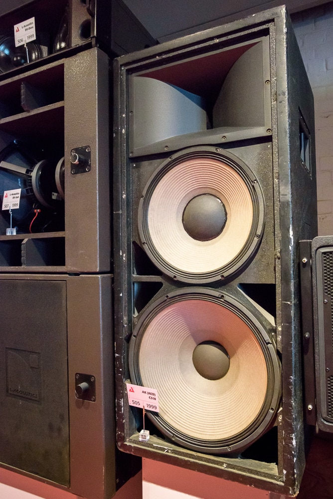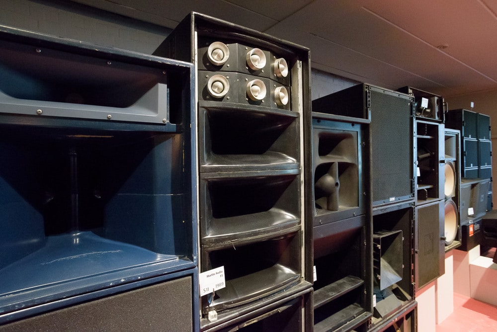 Die professionellen Beschallungslautsprecher im AV- und Veranstaltungstechnikmuseum der AED Group aus der Zeit von 1989-2013 dokumentieren, wie die Lautsprecherentwicklungen mit dem Einzug der Line-Arrays mehr oder weniger standardisiert waren.