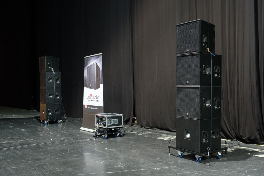 Eine „klassische“ Beschallungslösung von ProAudio Technology ist das Setup auf Basis der HT16, hier wurden effektiv an einem Amp je Seite ein Topteil HT16 und drei Subwoofer SW18 betrieben. Bereits getestet wurde das System in PRODUCTION PARTNER 10/2013, der Bericht gibt einen guten Überblick über Technologie und Performance des Systems.