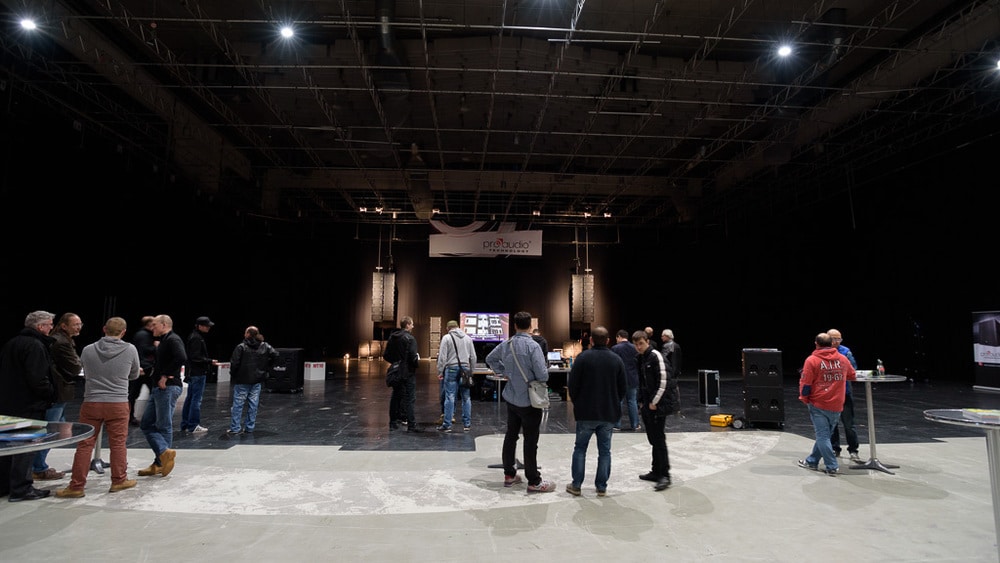 In spen realistischen Live-Dimension der MP Medienparks in Hürth bei Köln präsentierten ProAudio Technology und Hoellstern Ende April 2016 typische Systemlösungen für die Beschallung. Auf den großzügigen rund 1500 m² des Studio 1 hatten die Beschallungsteams vier typische Konstellationen vorführbereit aufgebaut.