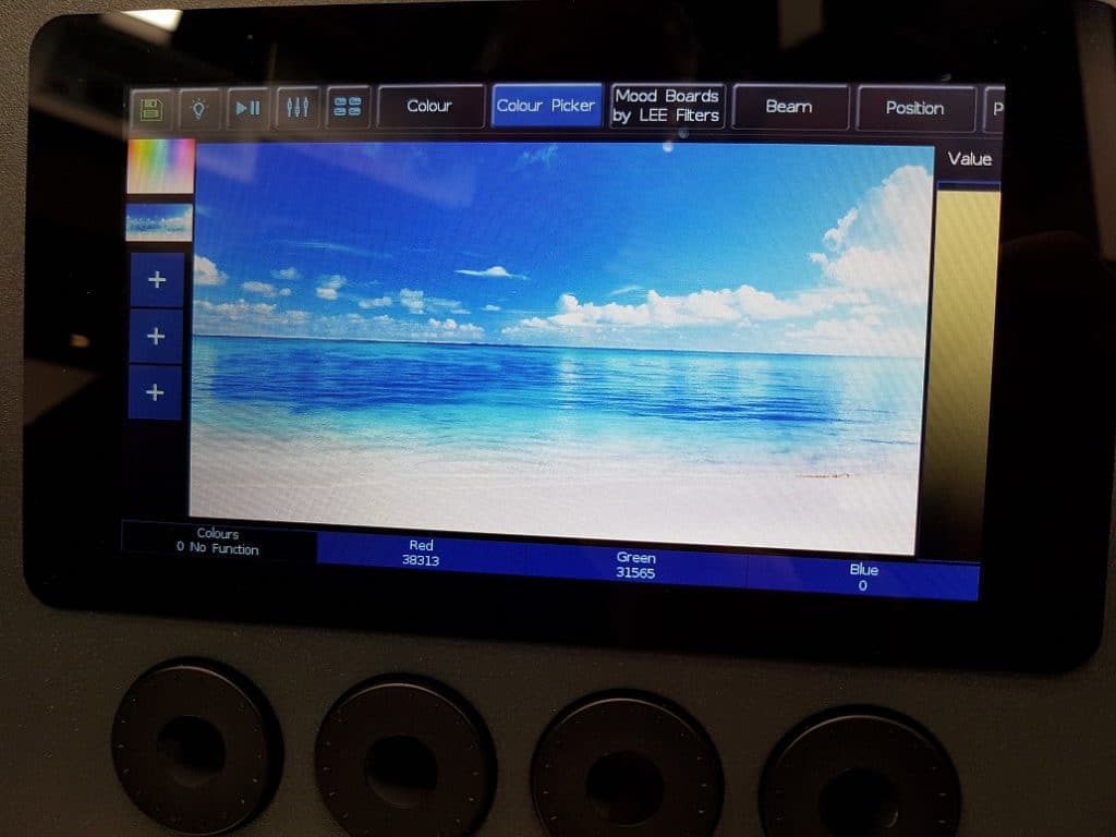 Über den Multitouch lassen sich Farbverläufe sehr einfach über die ausgewählten Lampen verteilen. Während bei der FLX S48 ein externer Touchscreen per DVI und USB angeschlossen werden kann, fungiert bei der S24 eine gesonderte Monitor-App für Tablets als externer Touchscreen. Mit der intuitiven Arbeitsweise lassen sich bei der FLX S Serie kostengünstig und schnell beeindruckende Lichtshows für kleinere Produktionen erstellen. Und wenn man mal nicht weiterweiß, gibt es neben einer mehrsprachigen Hilfefunktion direkt im Pult auch einen youtube-Kanal mit zahlreichen Schulungsvideos. Der Listenpreis für die FLX Serie liegt bei 1500 bis 2500 €.