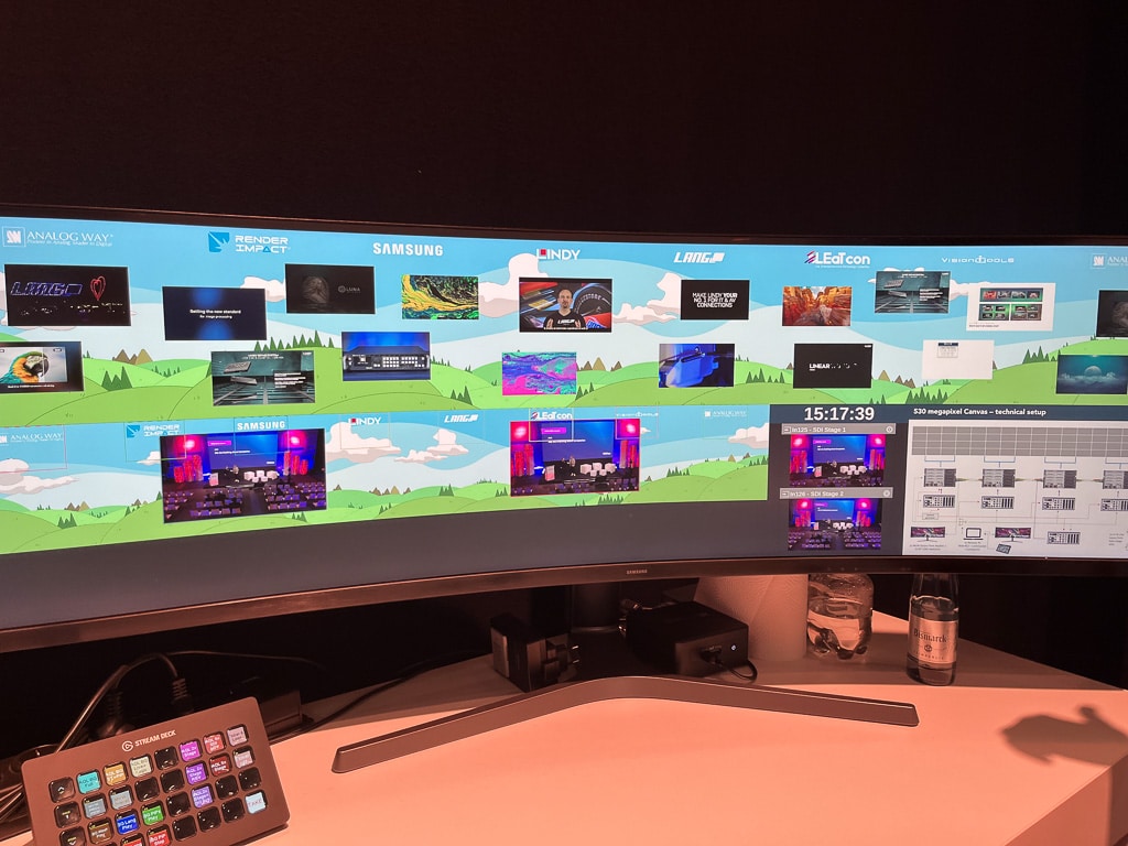 Bei diesem Verständnis entsteht der wohl größte Mehrwert solcher Proof-of-Concept Installationen: Als Dienstleister erkennen wir, welche Mauern in der Arbeit mit hohen Bandbreiten zu fallen beginnen. Hinzu kommt der nahe Austausch zwischen Anwendenden und dem Hersteller. Schnell widmen sich die Gespräche am Demo-Aufbau den Fragen, wie man so einen großen Screen am besten verwalten kann, was Bedienpulte in Zukunft leisten müssen, oder wann man selbst schon sowas ähnliches hätte gebrauchen können. Sich gegenseitig zu inspirieren und Grenzen des Machbaren zu verschieben lautet die Devise. Dabei waren sehr viele Menschen beteiligt, die mit Know-How, Material, Content, Entwicklungsarbeit und Marketing zu einer überaus erfolgreichen und eindrucksvollen Demonstration beigetragen haben.