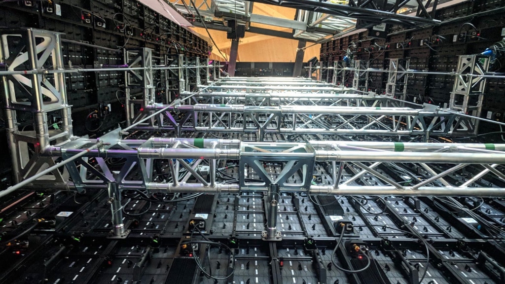 Wichtig für solch große Bühnenbilder ist die Verwendung eines LEDModuls, welches bereits hinsichtlich seiner eigenen mechanischen Stabilität geeignet sein muss, um für Projekte dieser Größenordnung überhaupt verwendet werden zu können. Die sB6io erfüllt, neben der hohen Bildqualität, alle diese mechanischen Grundvoraussetzungen, die an die Modulstabilität gestellt werden. Die Module dieser Baureihe verfügen selbst über eine gerechnete Statik und Belastungstests, und lassen auch bei starken Wind- und Wettereinflüssen große Bauhöhen zu. LEDitgo war aber nicht nur für die Lieferung der LED-Module zuständig, sondern wurde außerdem beauftragt, eine entsprechende Rückwandkonstruktion hierfür zu liefern, die in der Lage sein musste, die zu erwartenden Windlasten abzufangen und einen sicheren Auf- und Abbau der Anlage auch bei engem Zeitplan zu garantieren.