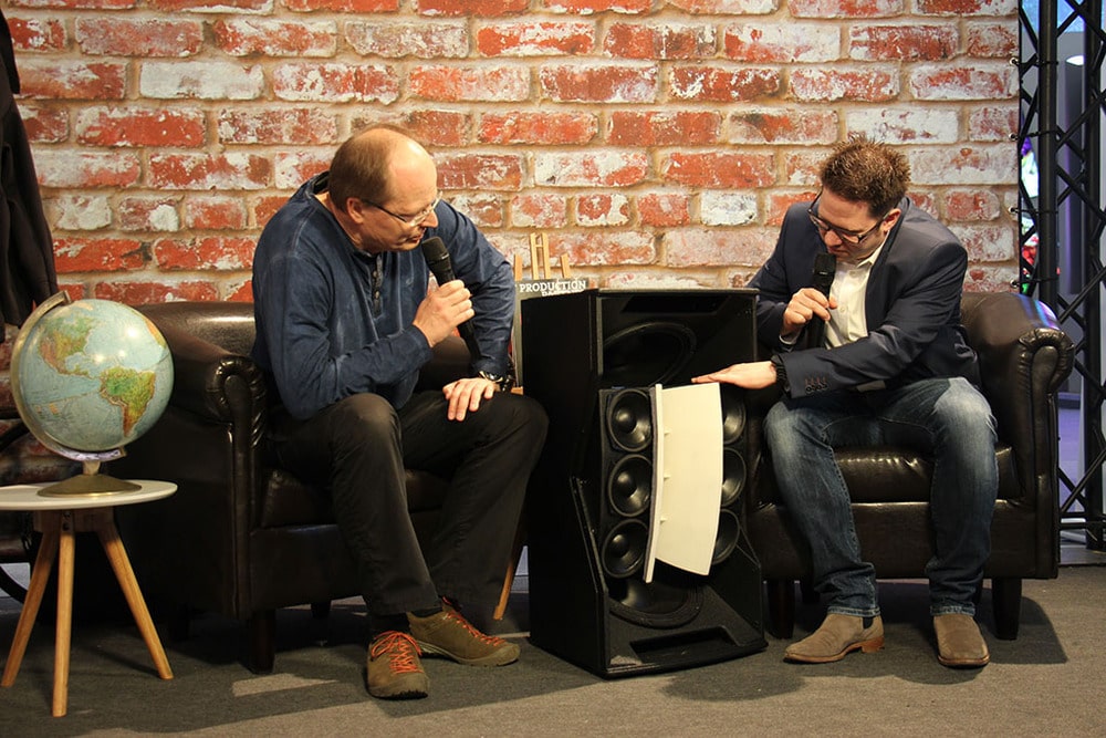 Lars Heinrich von Kling&Freitag und Detlef Hoepfner, Redakteur bei PRODUCTION PARTNER, in unserem Facebook Live Videostudio auf der Prolight + Sound. (Bild: Sylvia Koch )