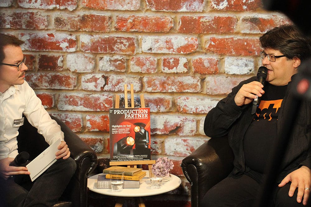 Marcus Pohl, Geschäftsführer der ISDV (r.), und PRODUCATION PARTNER-Redakteur Marcel Courth im Interview auf der Prolight + Sound 2017. (Bild: Sylvia Koch )