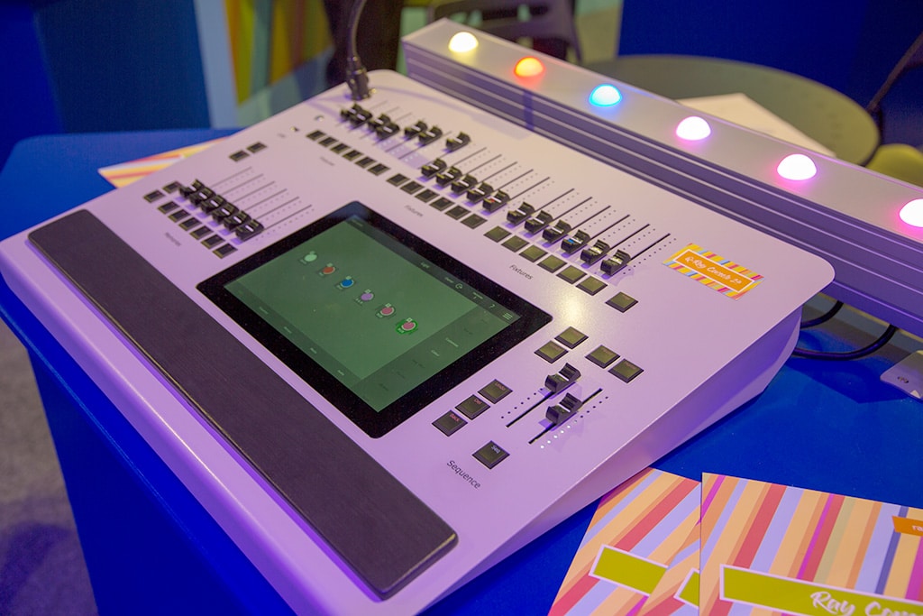 In Halle 12.0 in Gang A findet man ein neues Konzept für eine Lichtsteuerung. Q-Ray ist ein Lichtstellpult, dass für den Bereich Aulen, Hotels, kleine Theater und kleinere Anwendungsgebiete konzipiert wurde. Mit dem Motto „As simple as you need“ drückt der Entwickler aus, für was die Konsole steht. Q-Ray ist modular aufgebaut, zum Start ist der Funktionsumfang ganz simpel gehalten, niemand soll überfordert sein und auch der ungeschulte Hausmeister soll in der Lage sein, die notwendigen Beleuchtungsschritte umsetzen zu können. Braucht man mehr Funktionsumfang ist es möglich per Webshop direkt über das Pult neue Module hinzuzufügen, wie eine Farbsteuerung oder auch Memory Pages. Ansonsten lesen sich die weiteren Features jedoch ebenso interessant und modern. 10“ Touchscreen, 2 x DMX-Out, Wifi-Connection per LumenRadio, DVI-Ausgang für einen externen Monitor, ArtNet und sACN Software-Module, Colour Picker und erweiterbar bis zu 4 Universen.