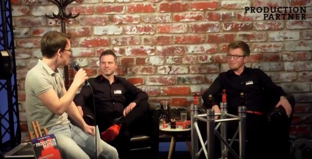 Dennis Klostermann und Niklas Prüm von HOF Autec im Production Partner Live-Videostudio auf der Prolight + Sound 2018. (Bild: Youtube Screenshot)