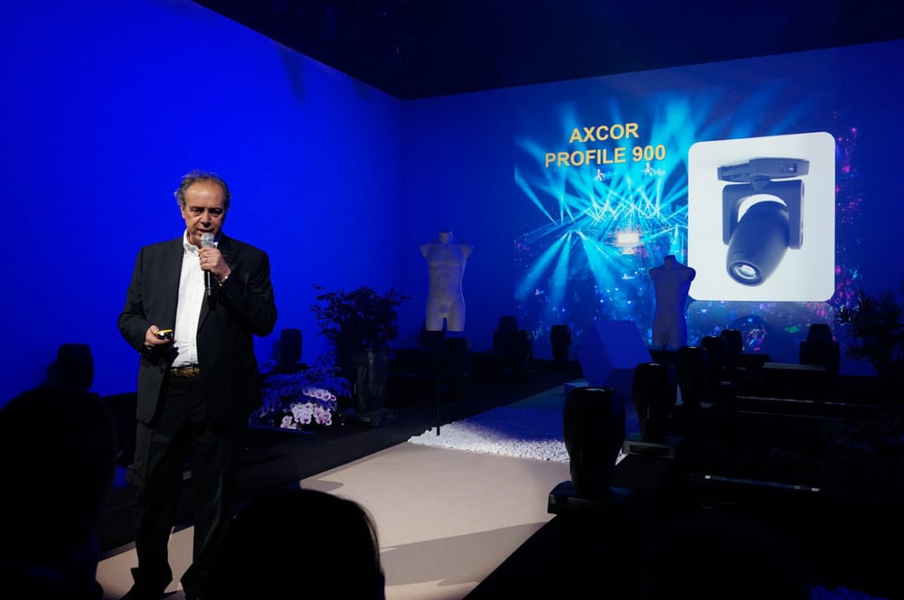 ClayPaky präsentiert mit dem Axcor Profile 900 sein erstes LED-Spotlight. Die 900 W starke Weißlicht-Engine erzeugt dabei laut Hersteller rund 24.000 Lumen Output, die Farbgebung erfolgt anschließend konventionell mittels CMY-Mischsystem, linearem CTO oder Farbrad. An weiteren Features bietet der Axcor einen großen Zoombereich, Gobo- und Animationsrad, Prisma, Frost sowie ein komplettes Blendenschiebersystem.