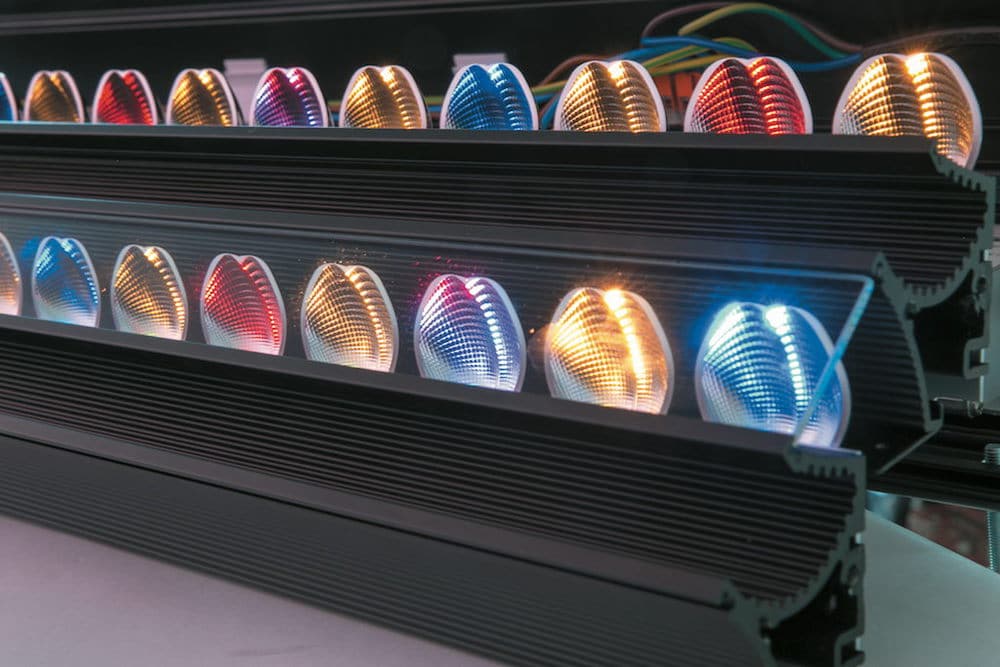 Der Robert Juliat DALIS 860 schickt sich an, eine neue Entwicklungsstufe in der Cyclorama-Beleuchtung einzuleiten: Auf den ersten Blick wirkt der DALIS 860 wie eine normale LED-Rampe mit einer Länge von einem Meter. Auf den zweiten Blick lässt aber der Aufbau der Optik etwas Besonderes vermuten: Während alle anderen Rampen oder Striplights zur Horizontausleuchtung ihren typischen Aufbau mit einzel- nen Kollimatoren preisgeben, ganz zu schweigen von den üblichen Flutern, zeigt der Robert Juliat DALIS 860 eigentlich nur schmale Schlitze mit einer Reihe von Reflektoren. Damit zeichnet sich schon ab, dass man mit dem Robert Juliat DALIS 860 keinen universell nutzbaren Fluter in langgezogener Rechteckform erhält, sondern einen Spezialisten in puncto Horizontausleuchtung.