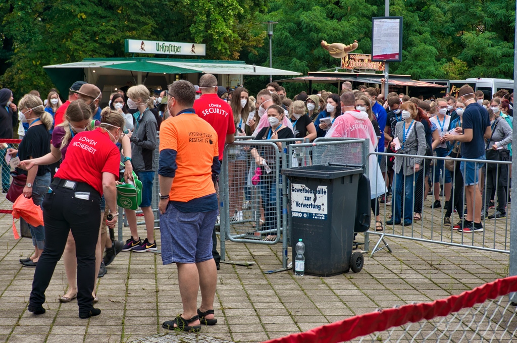 Der Name „RESTART-19“ leitet sich aus dem englischen Untertitel „Risk prEdiction of indoor SporTs And cultuRe events for the Transmission of COVID-19“ ab und bedeutet übersetzt also in etwa „Risikovorhersage einer COVID- 19-Übertragung bei Sport- und Kulturveranstaltungen in geschlossenen Räumen“. Ein etwas weit greifender Titel, geht es doch primär darum, evidenzbasiert und mit wissenschaftlichem Studiendesign endlich objektive Zahlen und Daten bezüglich potenziell übertragungsrelevanter Situationen und Bereiche bei Indoor-Veranstaltungen zu ermitteln, zu erfassen und auszuwerten. Ob und in welcher Tragweite ein möglicherweise eingeschleppter SARS-CoV-2-Virus tatsächlich übertragen wird, es anschließend zu einem Ausbruch von COVID-19 kommt und welchen Verlauf die Krankheit letztlich nimmt – darüber kann und wird die Studie keine Aussage machen können. Dennoch bietet RESTART-19 erstmalig seit Ausbruch der Pandemie Anfang 2020 die Möglichkeit, das Stigma (Groß-)Veranstaltung bzw. Indoor- Veranstaltung zu beenden und eine wissenschaftliche Grundlage für weitere Maßnahmen und Lockerungen, im ungünstigen Fall aber auch für weitere Verbote zu erhalten.