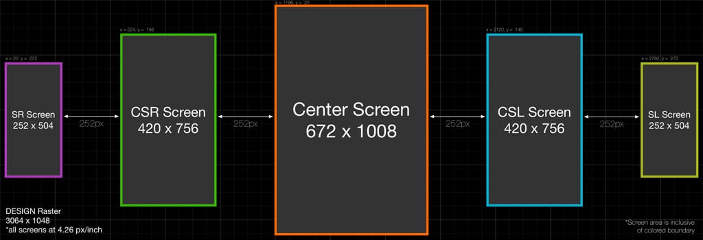 Als Design-Rastergibt Frank die maßstabsgetreue Aufsicht der Screens an die Content-Produktion weiter, ausgehend von einer einheitlichen Pixeldichte auf allen Flächen (Bild: Laura Frank)