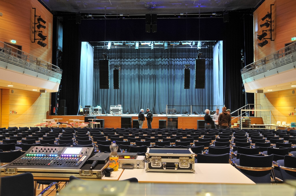 Der Einladung zur Roadshow waren trotz der kurzfristigen Ankündigung bereits am ersten Termin reichlich Interessenten nach Bergheim gefolgt. Winfried Seeburg war zusammen mit seinen Entwicklern und Gebietsvertretern vor Ort und führte in drei Durchläufen zunächst die akustischen Fähigkeiten seiner beiden neuen System vor und zeigte anschließend auf der Bühne die Handhabung der Flugvorrichtung, die an den beiden neuen Galeos von vorne und von der Seite fast unsichtbar voll integriert ist. Die dargebotenen Hörbeispiele zeigten in beeindruckender Weise, was auch ein kompaktes System wie das Galeo S schon in der Lage zu leisten ist. Noch souveräner spielte das große Galeo T auf, wo man sich gut vorstellen konnte, dass die beiden 6er Linien auch noch für deutlich größere Hallen gut einsetzbar sind. In der großzügigen und gut ausgestatteten Medio Halle wurde das Galeo S mit zwei 8er-Lines und das Galeo T mit zwei 6er-Lines an der Bühne geflogen. Beide Line-Arrays wurden von je acht der zugehörigen Subwoofer unterstützt.