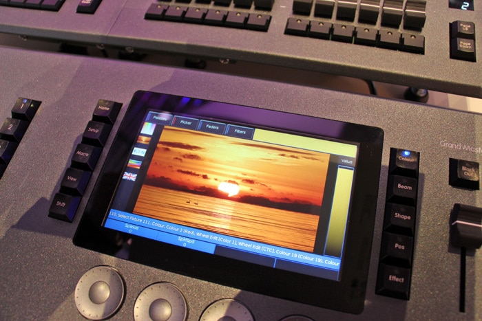 Zero 88 stellte hoch zufrieden das FLX System vor. Zielgruppen für das Lichtsteuerungssystem sind Event-Dienstleister, über die Stadthalle bis hin zu kleineren Theatern. Speziell das neuentwickelte Farbinterface in der FLX-Konsole soll für eine enorme Erleichterung für Techniker und Operator sein, vor allem in der Anwendung verschiedener Scheinwerfer-Typen mit unterschiedlichen Farbmischsystemen im Lichtrigg. Denn sowohl die Farbmischungen RGB, CMY als auch HSI werden optisch und programmiertechnisch auf einer Page angezeigt – Änderungen werden für alle Mischsysteme und Scheinwerfer-Typen in einer Gruppe sofort übernommen. Colorpicking kann aber auch über auf die Konsole geladene Bilder durchgeführt werden. Eine Diskussion über das richtige Magenta mit dem Kunden fällt somit weg. Aber auch die Filterlibraries lassen sich sehen – neben Lee, Rosco und Apollo, glänzt auch die Implementierung der Mood Boards von LEE. Weitere Features sind u.a. der 7“ Multitouchscreen, die direkte Ausgabe von 2.048 Kanälen und die aufgeräumte und intuitive Benutzeroberfläche. Mehr technische Details erhalten Sie in einer der kommenden Ausgaben von PRODUCTION PARTNER.