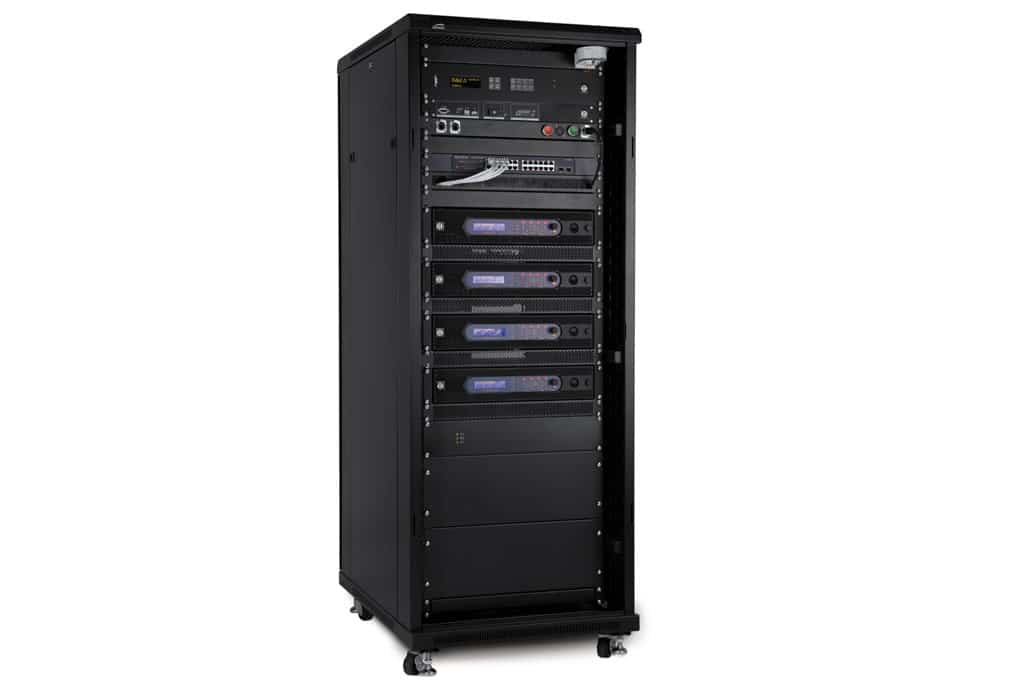 Für den Antrieb der APS-Speaker sorgen zwölf, perfekt dazu passende CODA Audio Linus 14D-Systemendstufen. Die vierkanaligen Leistungsverstärker (19“, 2 HE) leisten jeweils 4 x 3.500 Watt an 4 Ohm. Jeder Menge Power – mit großer Effizienz. So weist Christian Wild darauf hin, dass die im Dauerbetrieb laufenden Endstufen wesentlich weniger Energie benötigen würden als die früher im Stadion eingesetzten Modelle: lediglich zwölf vierkanalige LINUS 14D lösen in der BayArena die einst stattliche Menge von 72 Endstufen ab.
