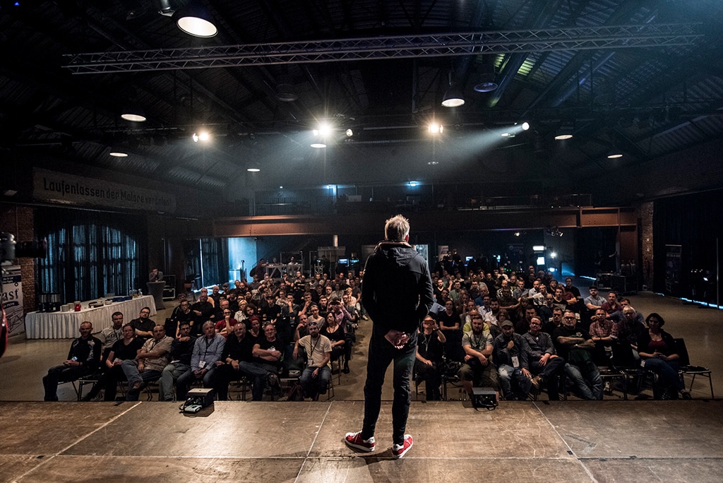 Lichtdesigner Günter Jäcklebei seinem Vortrag “Udos Geheimrat” bei der Bühnen&LichtGestalten 2018 (Bild: Rocketchris Photography, Christian Glatthor)