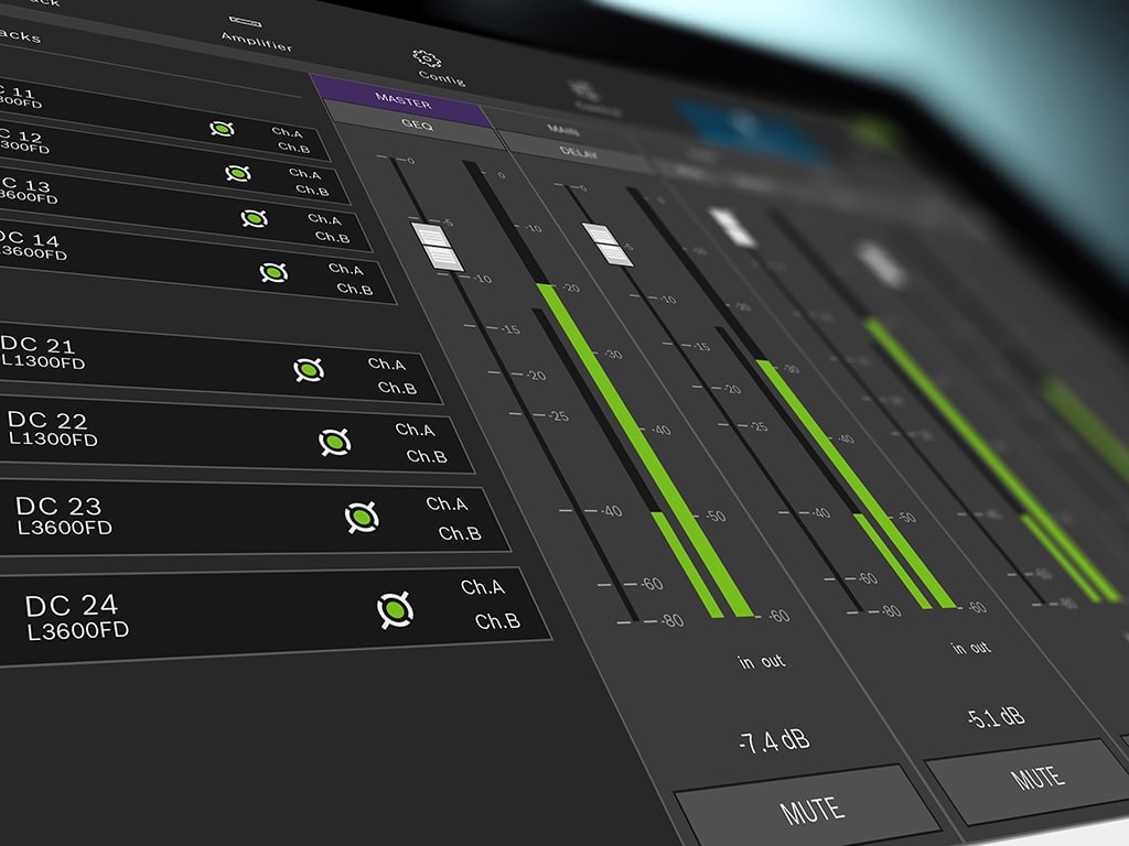 Der interne FIR-DSP beinhaltet parametrische Equalizer, Frequenzweichen, Limiter und Delay für jeden Kanal. Dynacord‘s neue Multi-Amplifier-Remote-Control Software (MARC) ist intuitiv bedienbar und erlaubt umfassende Konfiguration, Steuerung und Kontrolle von bis zu 8 Verstärkern in Echtzeit.