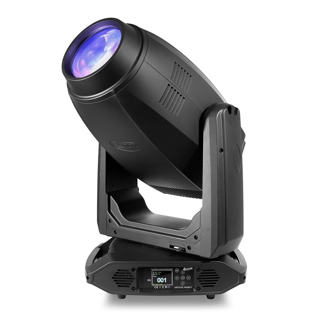 Der Artiste Monet ist mit seinen 45.000 Lumen ein herausragender LED Profil Moving-Head, da er einen Zoombereich von 6-50 Grad abdeckt und über ein einzigartiges Blendenschieber-System mit endlos 360 Grad Rotation, sowie über die neu entwickelte SpectraColor-Enginge verfügt. SpectraColor verwendet traditionelle CMY-Farben, fügt jedoch zusätzlich CTO und drei variable RGB-Flags für kräftige und lebendige Primärfarben hinzu, die zuvor nur schwer zu erreichen waren. Der Artiste Monet bietet ein umfassendes FX-Paket mit Animationsrad, 2 Prismen, 2 Frostfiltern, 2 Goboräder und Iris.