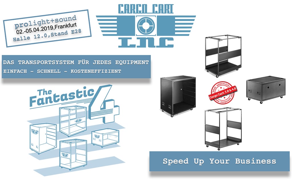 Auch dieses Jahr geht es für Cargo Cart wieder zur Prolight and Sound nach Frankfurt: Vom 2.-5. April 2019 wird sich Cargo Cart nach erfolgreichem Wachstum der Produktpalette auf doppelter Standgröße präsentieren.