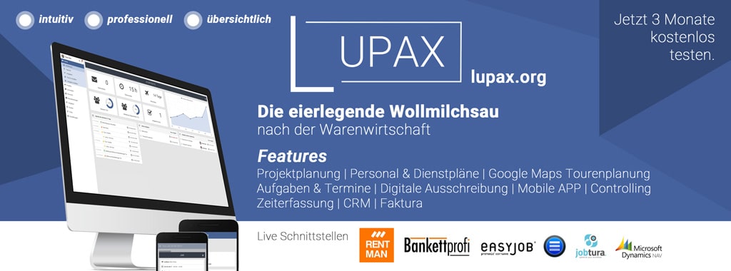 Auch wenn uns die Corona Krise beutelt, uns viel abverlangt und uns in die Pause zwingt, ist dies auch immer eine Möglichkeit über viele Dinge, vom Alltag losgelöst, nachzudenken. Nutzen Sie die ruhige Zeit sich neu aufzustellen, Ihre Arbeitsabläufe auf den Prüfstand zu stellen und Dinge zu tun, die Sie schon lange mal vor hatten. Die Zeit danach wird kommen und damit es dann reibungsloser läuft, bietet Lupax viele Funktionen um den Arbeitsalltag zu optimieren.